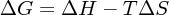 $\Delta G = \Delta H - T \Delta S$.