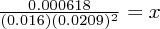 $\frac{0.000618}{(0.016)(0.0209)^2} = x$