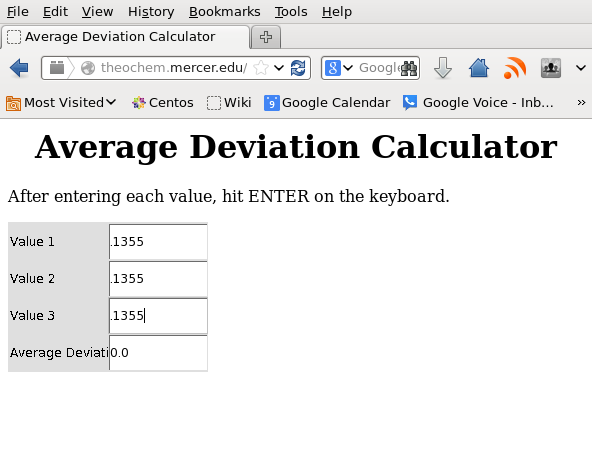 > My three best values are all .1355, but your average deviation calculator is saying my deviation is .0602. How is this possible? I thought it'd just be zero. Thanks.