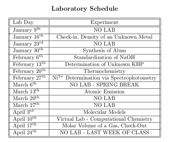[CHM 181] Revised Lab Schedule