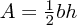 > $A=\frac{1}{2}b h$ where $b$ abd $h$ refer to the base and the height