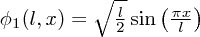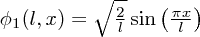 $\phi_1(l,x)=\sqrt{\frac{2}{l}} \sin\left(\frac{\pi x}{l}\right)$