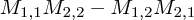 the 2D case is really easy as it equals $M_{1,1}M_{2,2}-M_{1,2}M_{2,1}$